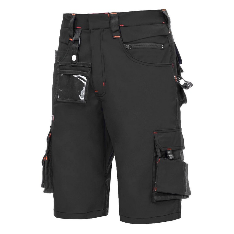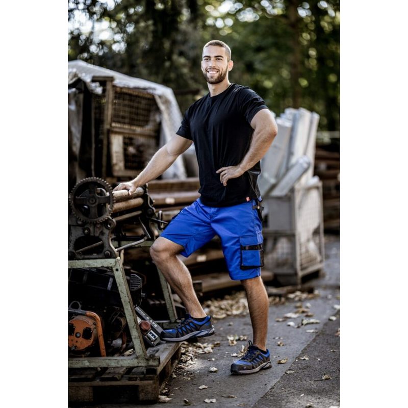 Kratke delovne hlače iz zračnega materiala, z elastičnim pasom, ojačitvami in odsevnim materialom ter praktičnimi detajli. Več podrobnosti v opisu.
