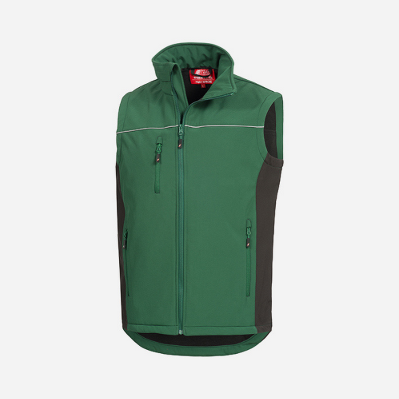 NITRAS MOTION TEX LIGHT softshell telovnik, 310 g/m², prijetno udobje nošenja zahvaljujoč mehkemu materialu, vodo odbojen in odporen na veter, podaljšan hrbet, raztegljiv material, pas z vrvico za optimalno prileganje, športni dizajn, odsevne črte na prsih in na hrbtni strani, stoječ ovratnik, barvno usklajena zadrga z zaščito za brado in zaščito pod zadrgo, žep na prsih, stranska žepa, vodo odbojni stolpec: 10.000 mmH2O, zračnost: 2.000 g/m²/24h.